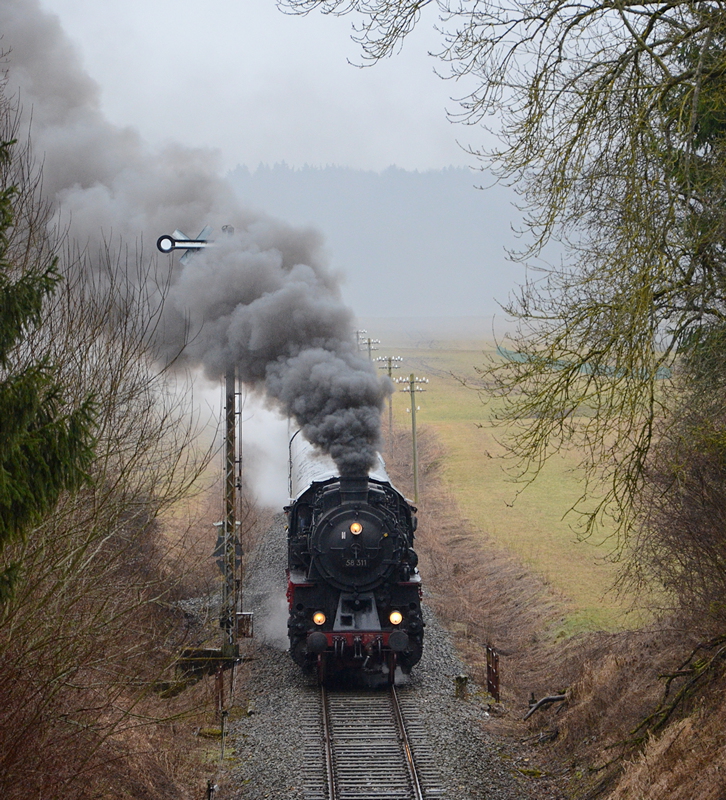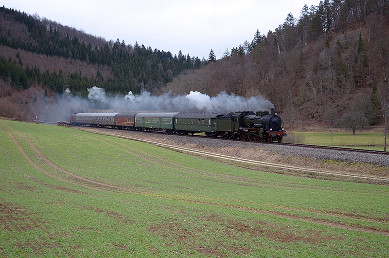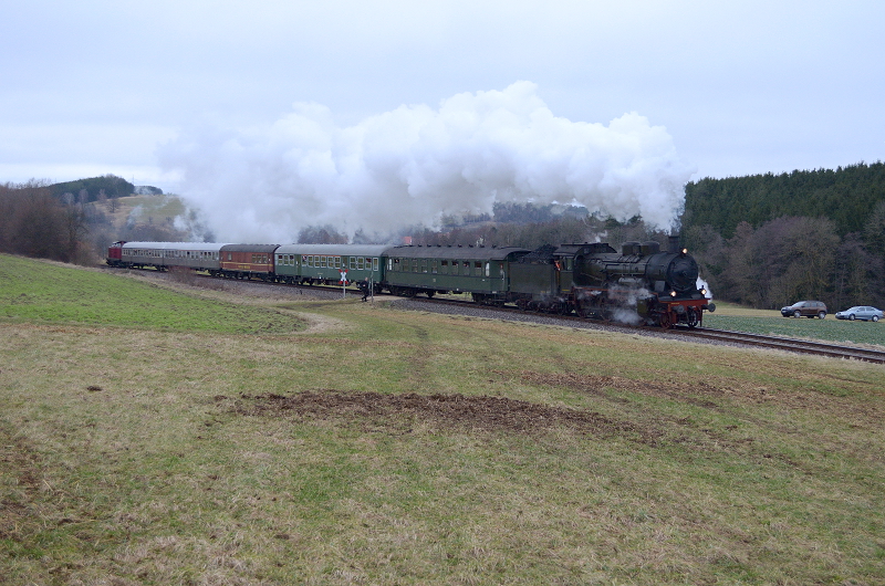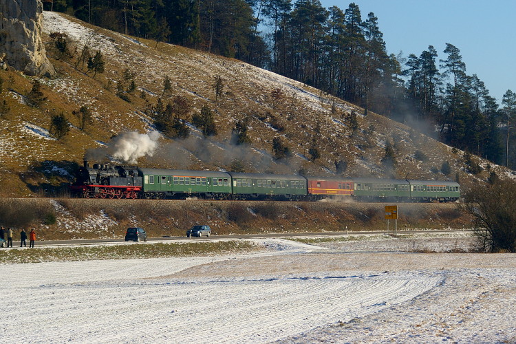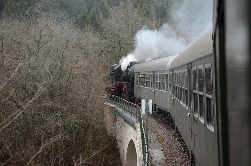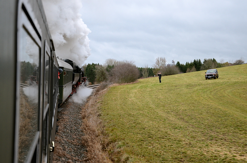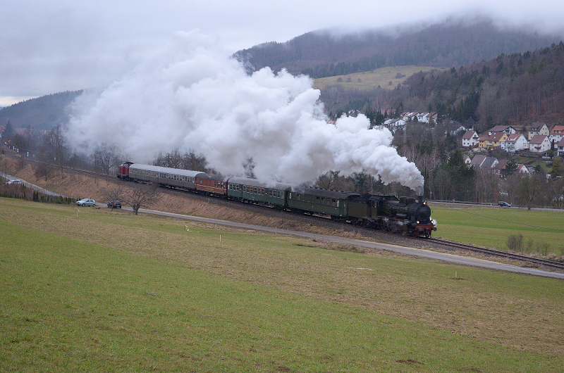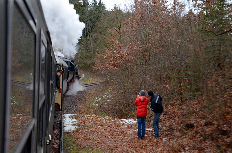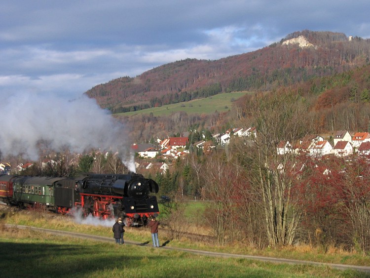 Überall wo Dampf angesagt ist, finden sich auch Fotografen ein, so wie hier zwischen Albstadt-Laufen und Albstadt-Lautlingen.
