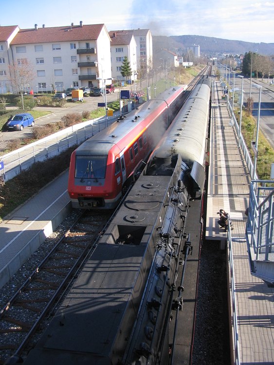 In Rottweil gab es eine Parallelausfahrt mit 75 1118 der UEF. Dieser Zug fuhr nach Spaichingen.