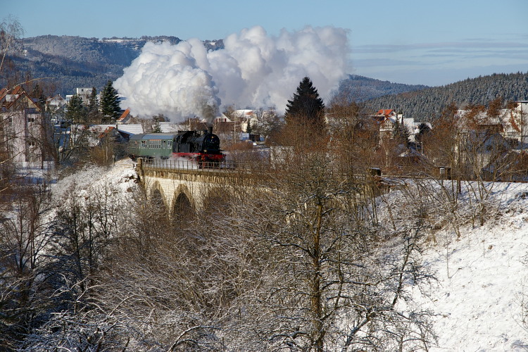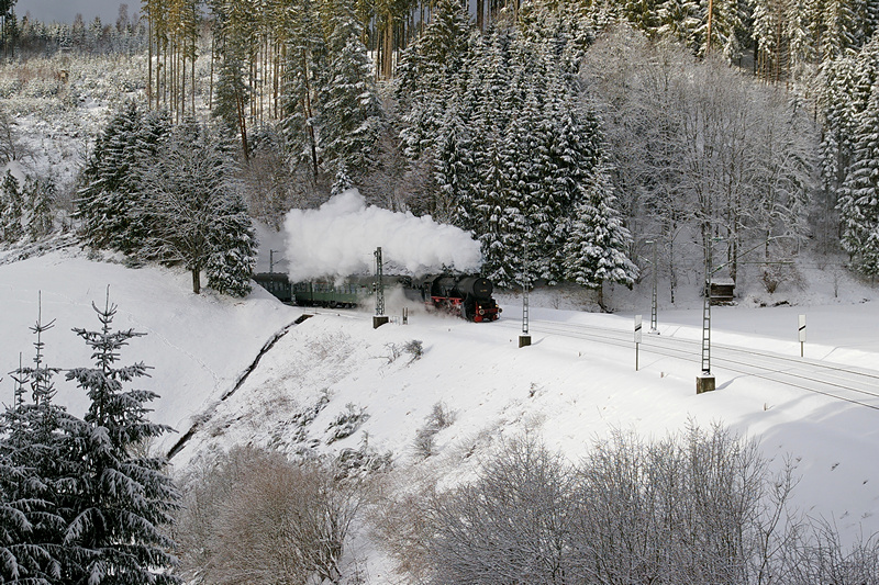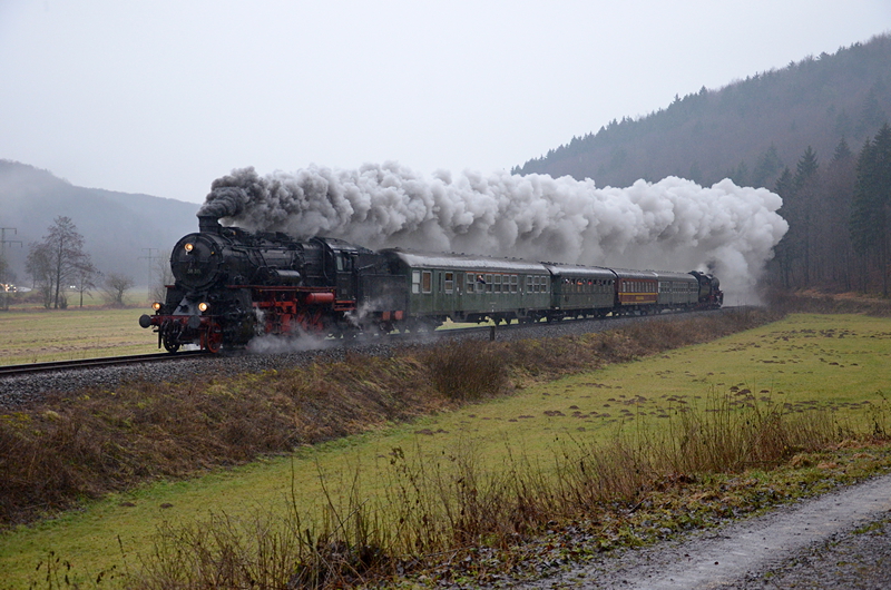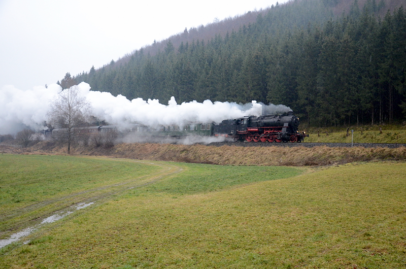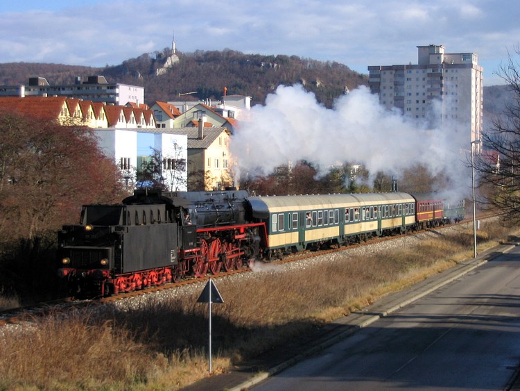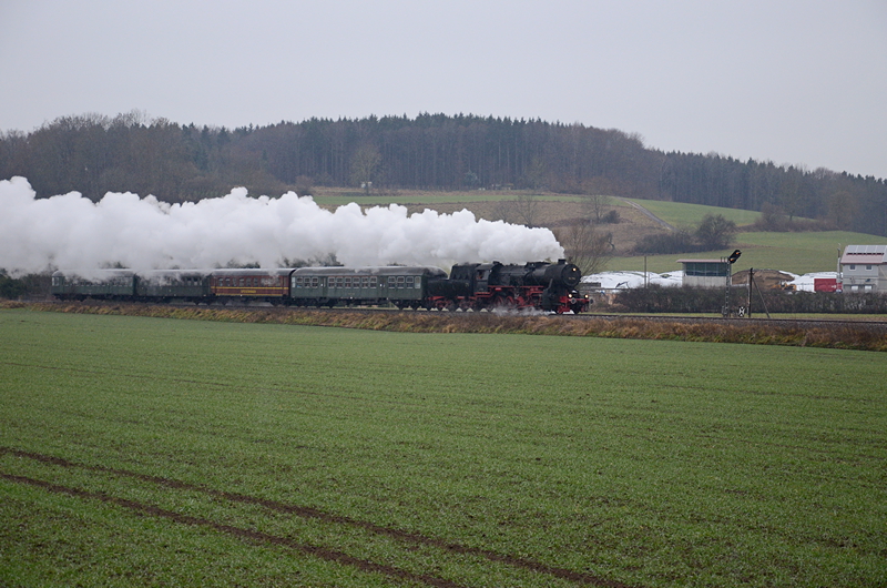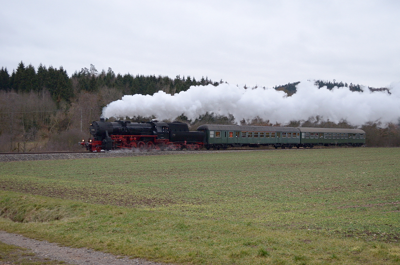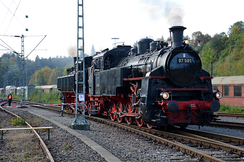 Ausfahrt des SDZ 33952 mit 50 3501 vom Dampflokwerk Meiningen nach Schwenningen.