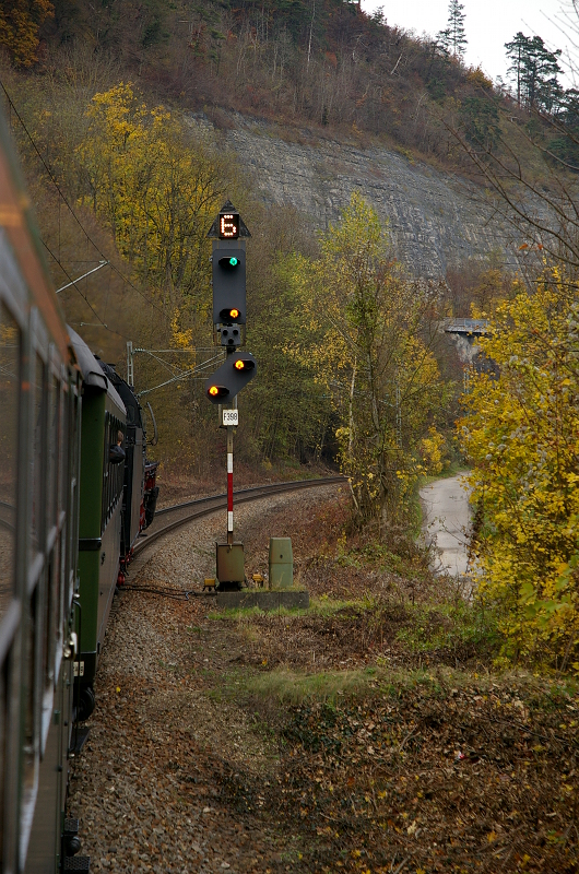 Natürlich habe ich auch noch eine Fahrt mitgemacht. Hier passieren wir das Einfahrtsignal von Sulz.