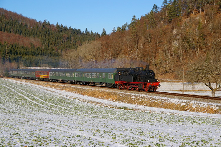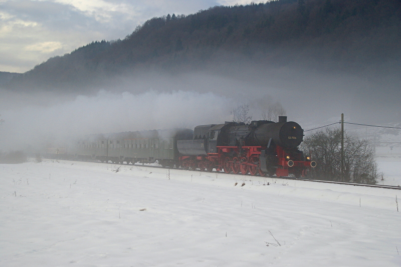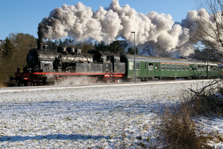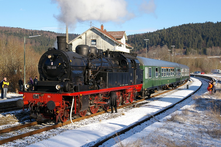 Weil die 52 7596 der EFZ noch in Meiningen zur Hauptuntersuchung weilte, gab die 78 468 der Eisenbahn-Tradition e.V. ein dreimonatiges Gastspiel in Rottweil, wo sie ein großes Programm zu bewältigen hatte. Unter anderem fuhr sie am 3. Januar 2010 von Tübingen aus über die Zollernbahn (KBS 766) nach Sigmaringen, und von dort auf den Gleisen der HzL (KBS 768)nach Gammertingen. Hier schloß sich eine Stichfahrt über die winterlichen Albhochfläche nach Kleinengstingen und zurück an. Die Rückfahrt erfolgte dann durchs Killertal nach Hechingen und Tübingen.