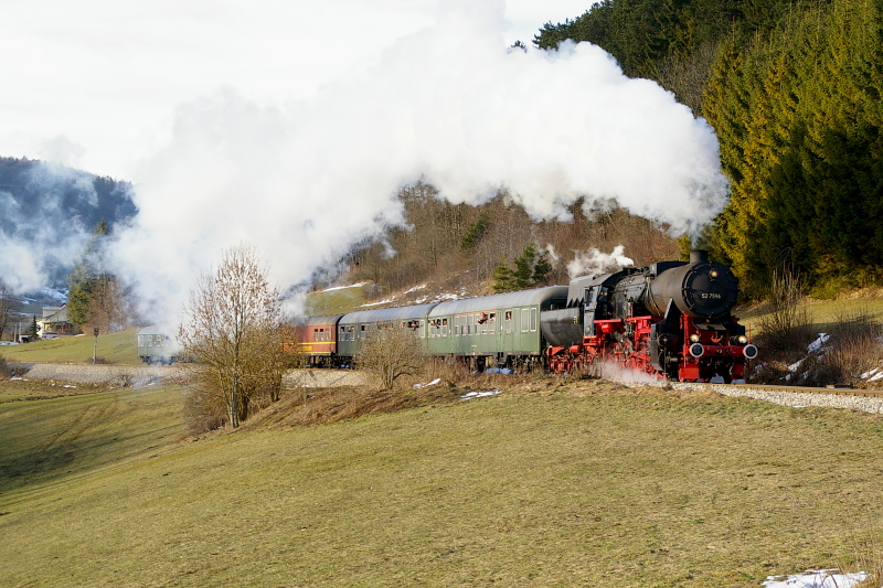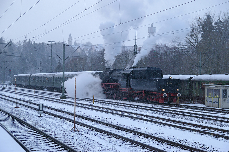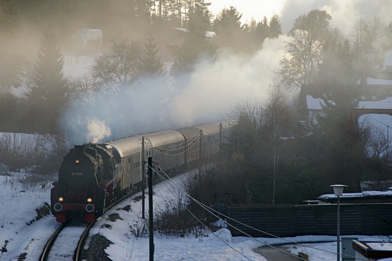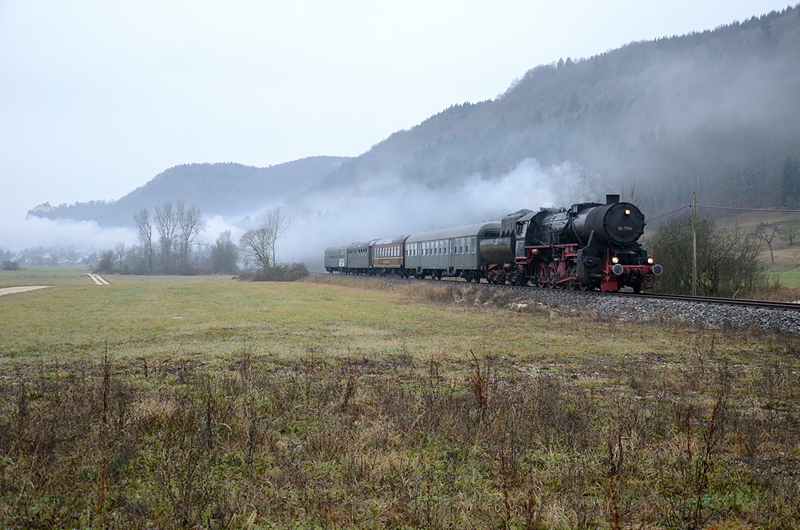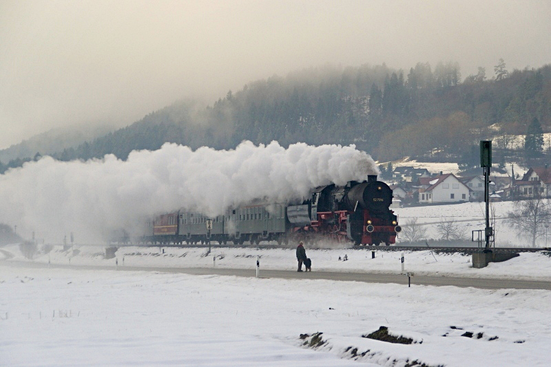 Expertimentalfoto von 52 7596 mit dem Sdz 52295 von Schwenningen nach Rottweil