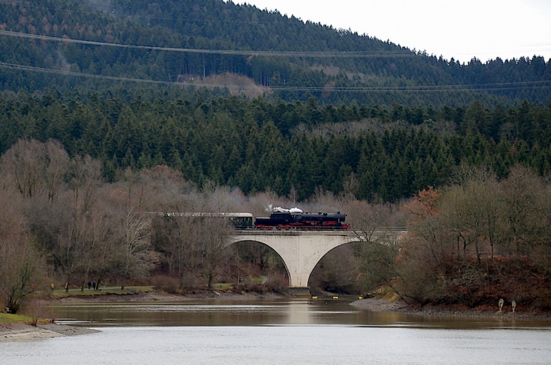 Auf dem Viadukt über dem Schlichem-Stausee.