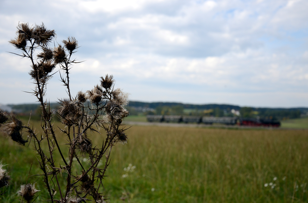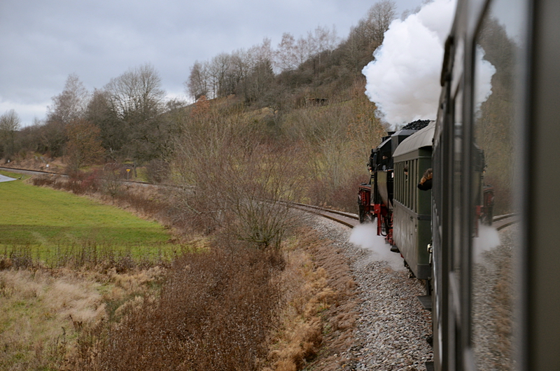 Die letzten beiden Bilder entstanden dann auf der Fahrt nach Kleinengstingen. Hier ist der Zug bei der Gedenkstätte Grafeneck zu sehen.