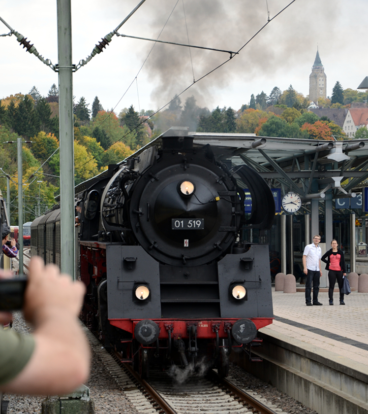 Mit 01 1066 der Ulmer Eisenbahnfreunde wurden Sonderfahrten auf der Gäubahn angeboten.