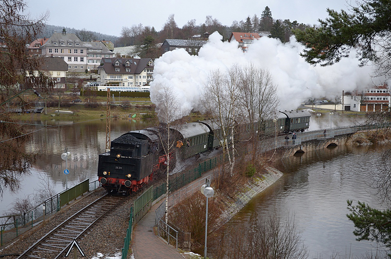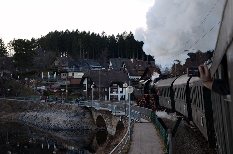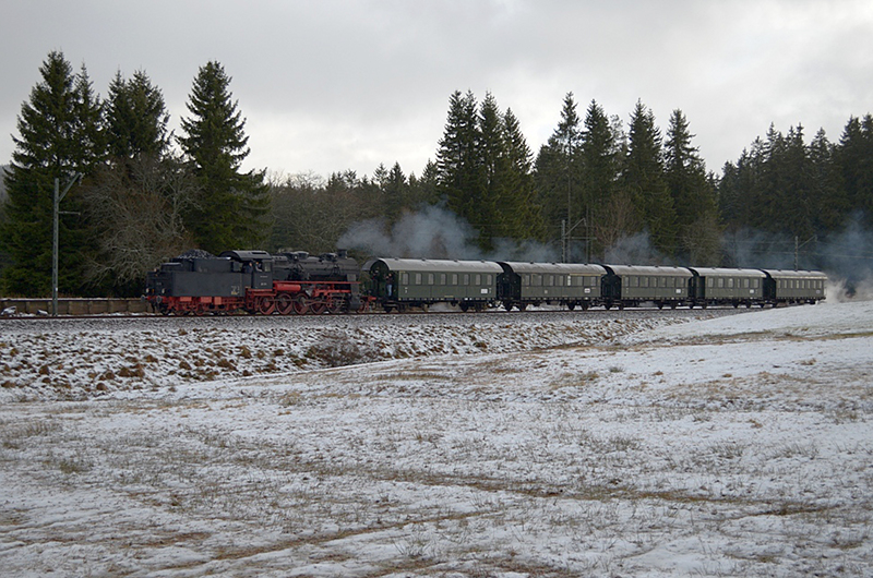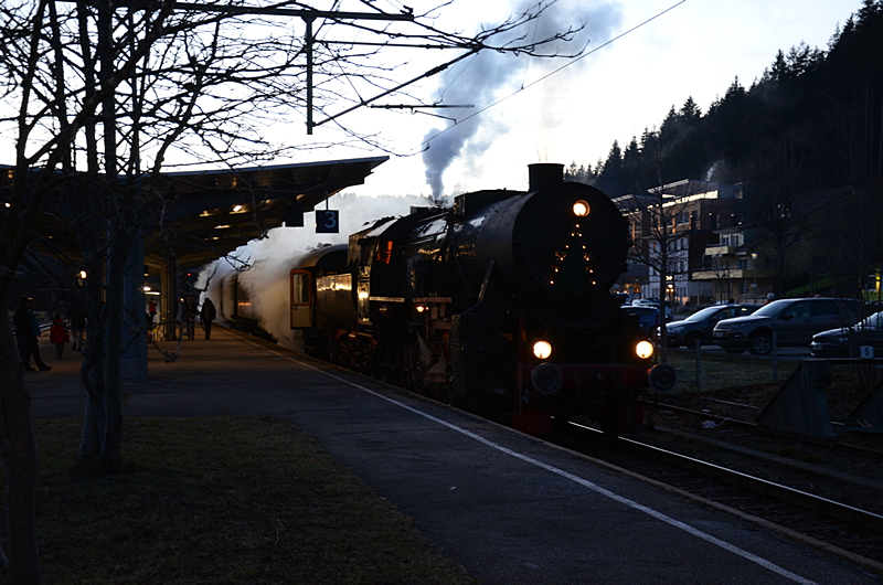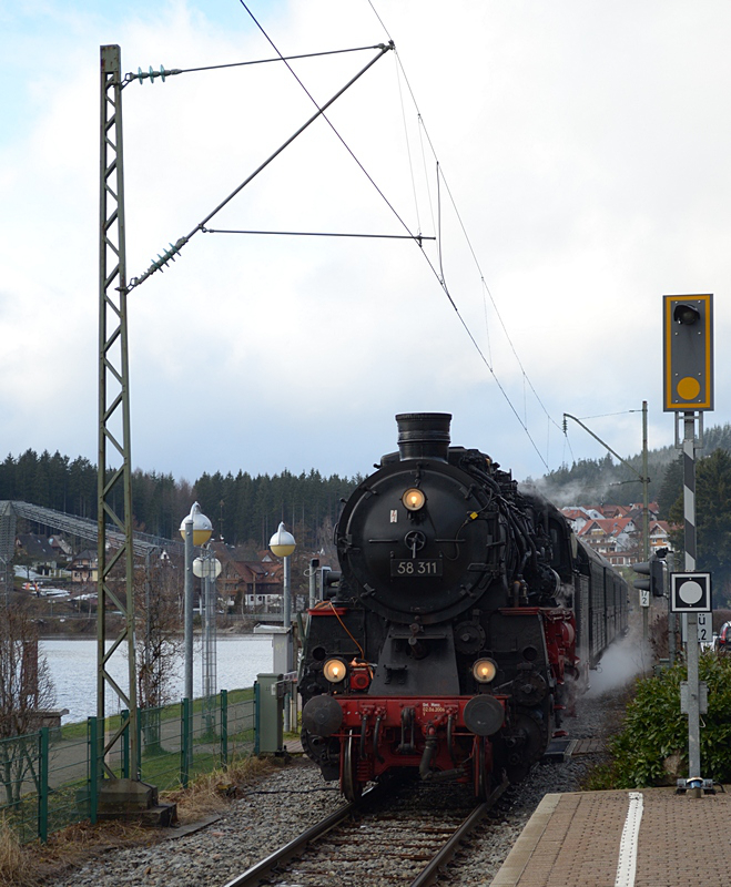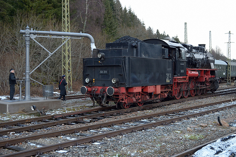 Vom 28. Dezember 2012 bis 1. Januar 2013 fanden auf der Strecke zwischen Seebrugg und Titisee Dampfzugfahrten mit 58 311 der Ulmer Eisenbahnfreunde statt. Angehängt waren 5 Donnerbüchsen. Am 28. Dezember war ich bei der Veranstaltung zu Gast.