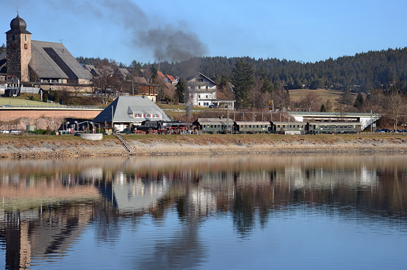 Auch 2015 fanden ab 28. Dezember wieder Dampfzugfahrten von Seebrugg nach Titisee statt, diesmal mit 52 7596 der Eisenbahnfreunde-Zollernbahn. Am 28. war ich bei schönstem Sonnenschein auch dabei.