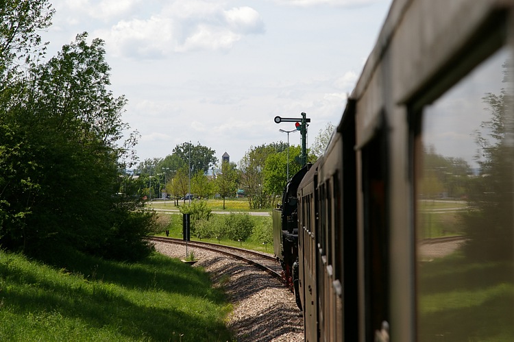Weil der Zug auf der Strecke doch recht langsam unterwegs war, kamen wir noch vor ihm in Weizen an und konnten ihn so bei der Einfahrt aufnehmen.