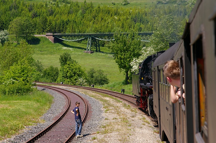 Gleich darauf das erste Highlight: Die Fahrt über den 252,5 Meter langen Biesenbach-Viadukt.