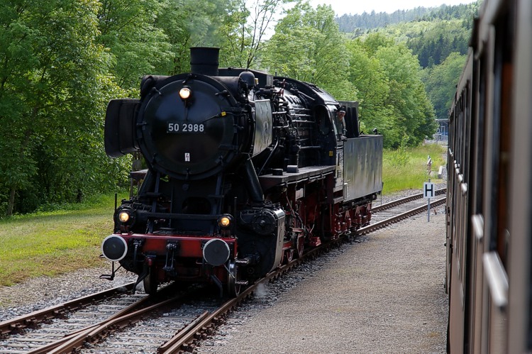 Kurz vor der Abfahrt: 50 2988 freut sich sicher genauso wie wir auf die Fahrt hinunter nach Weizen.