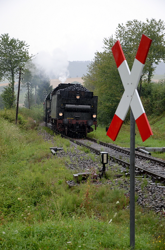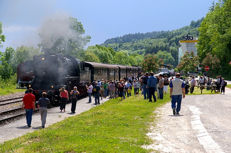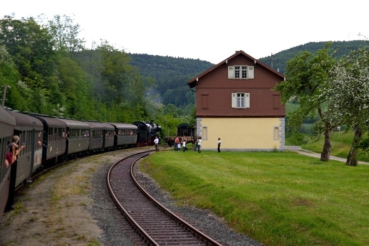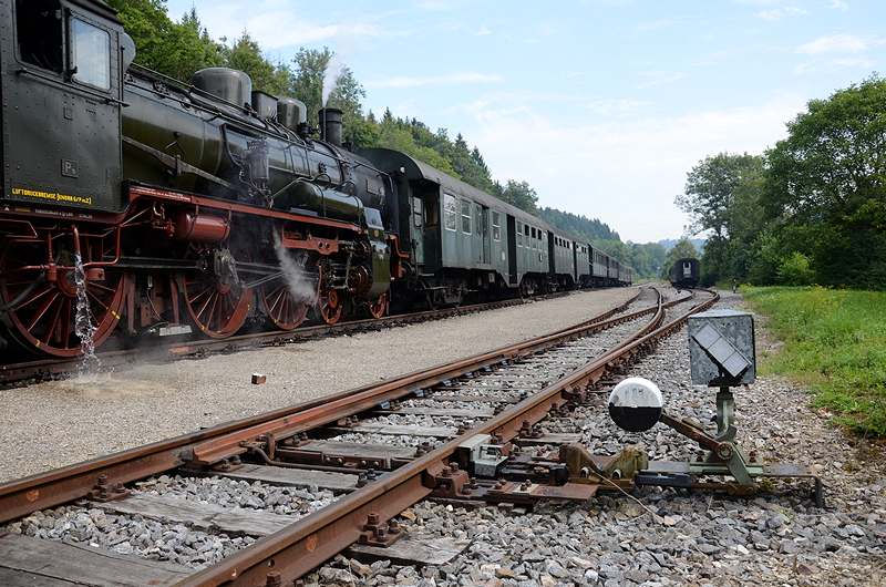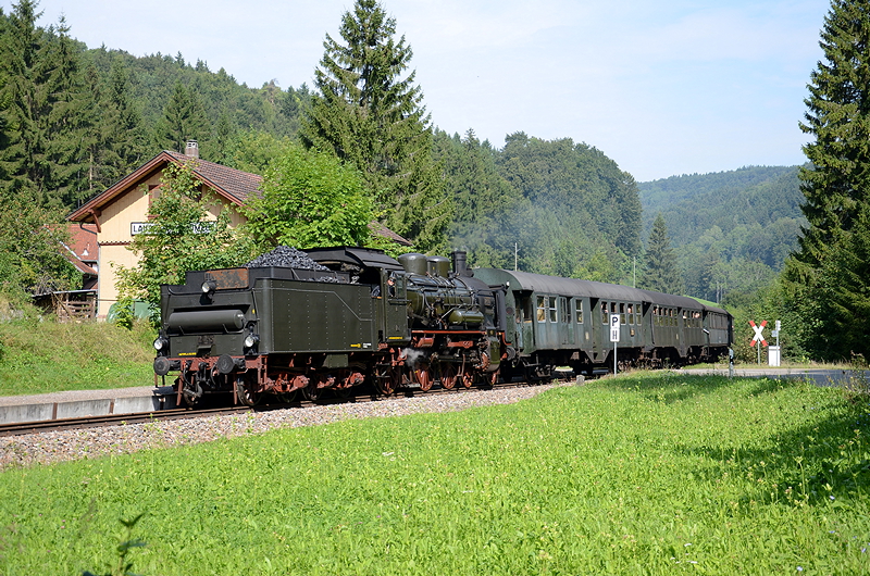Diesen finden wir an einen Bahnübergang an der Straße von Fützen nach Achdorf. Gemütlich rollt die P8 mit ihrem Zug Talwärts.
