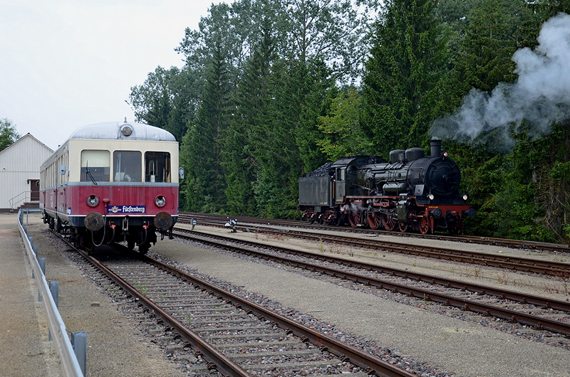 Die P8 neben dem Esslinger Triebwagen VT 3 in Blumberg-Zollhaus.