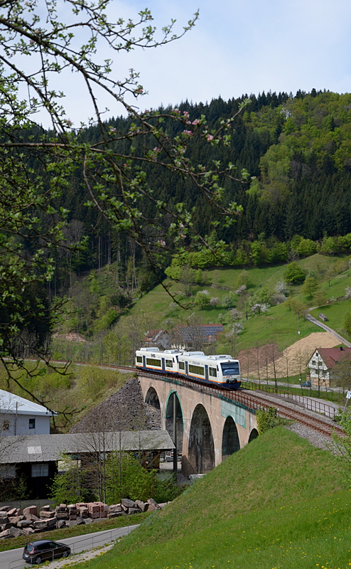 Auf dem Viadukt bei Bad Peterstal wurden VT 521 "Stadt Kehl" und 520 "Stadt Offenburg" als SWE 87392 nach Bad Peterstal-Griesbach fotografiert.