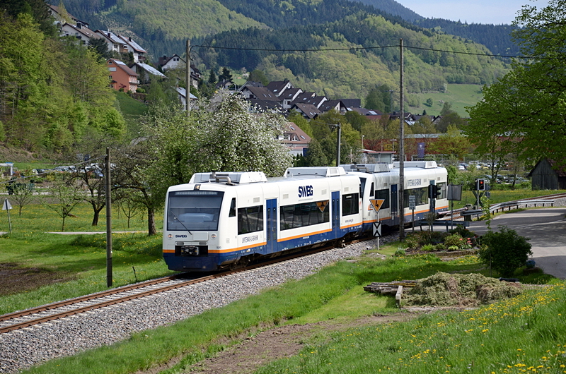 Es dauerte es nicht lange bis der Gegenzug angefahren kam. Es waren wieder VT 520 und 521 (siehe zwei Bilder vorher) welche sich nun als SWE 87501 auf dem Rückweg nach Freudenstadt befinden.