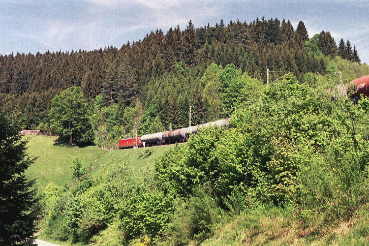 Bei Steinbis ist 185 040 mit einem Tankzug in Richtung Offenburg unterwegs.