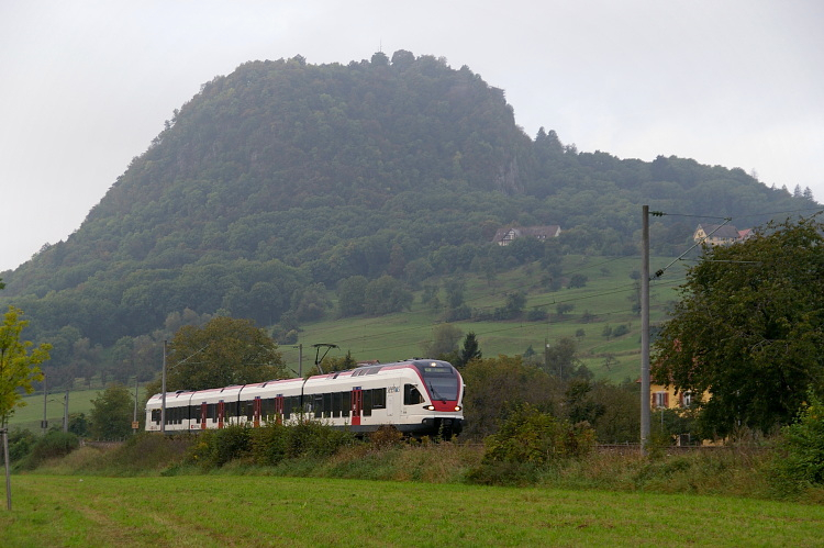Zwischen Konstanz und Engen haben die RABe 526 der SBB den Nahverkehr übernommen. Vor der Kulisse des Hohentwiel ist dieser unterwegs nach Engen.