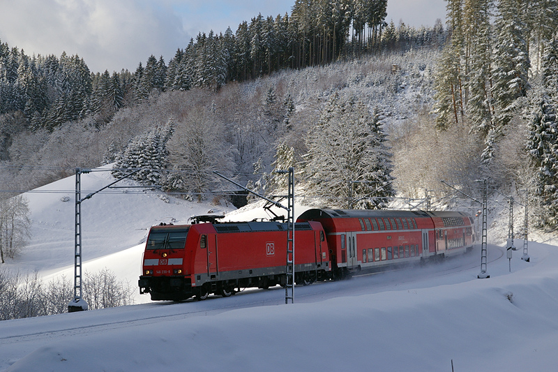 Etwa 10 Minuten kam wieder etwas Planverkehr mit einer unbekannten 146er die den RE 5323 durchs Groppertal in Richtung Konstanz zog.