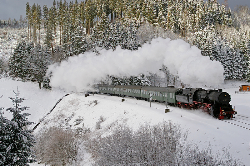 Mit 52 7596 führten die EFZ (Eisenbahnfreunde Zollernbahn) Tunnelfahrten zum Triberger Weihnachtszauber durch. Hier fotografiert bei Steinbis.