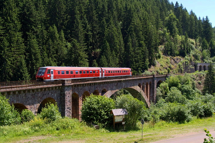 Weiter ging es zum Ravenna-Viadukt. In 36 Meter Höhe überquert eine mir unbekannt gebliebene 143er mit der RB 31579 die Brücke in Richtung Neustadt.