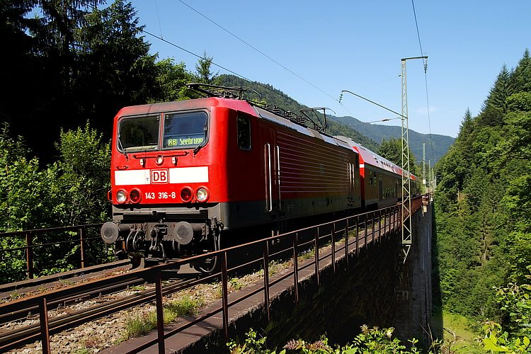 143 316 hat das 224 Meter lange Ravenna-Viadukt mit der RB 31577 nach Seebrugg überquert, und fährt gleich in den Ravenna-Tunnel ein.