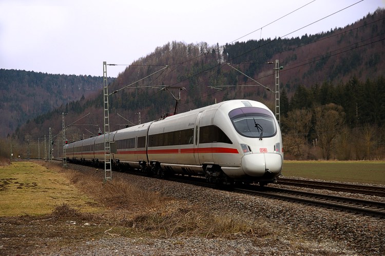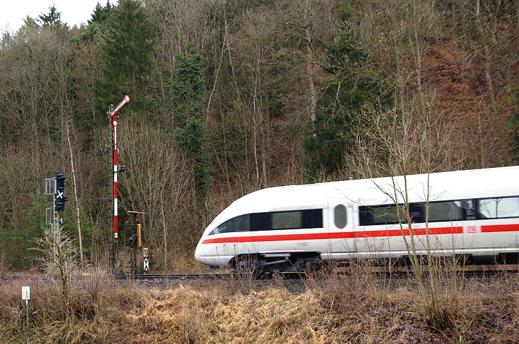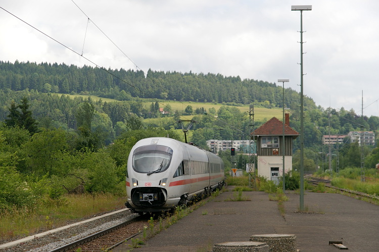 Nachschuss um 13:01 Uhr auf den in Richtung Stuttgart fahrenden ICE 280 (Singen-Stuttgart) bei der Betriebsausweiche Grünholz Gf zwischen Aistaig und Sulz.