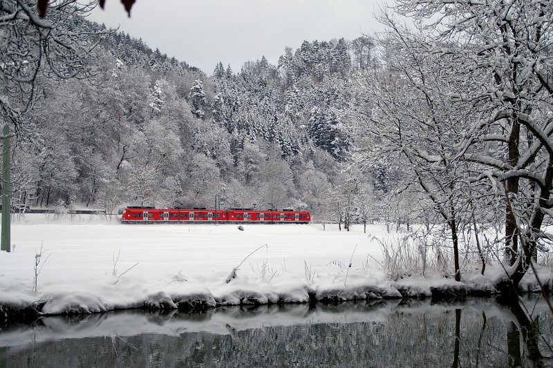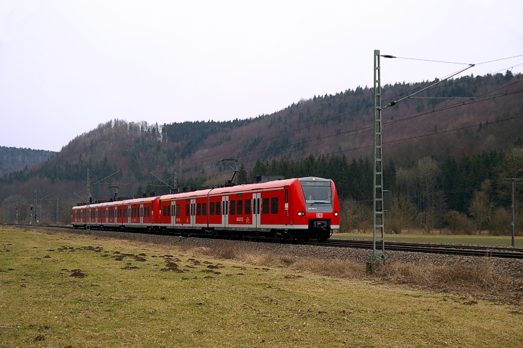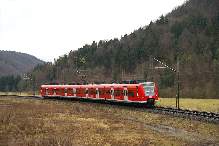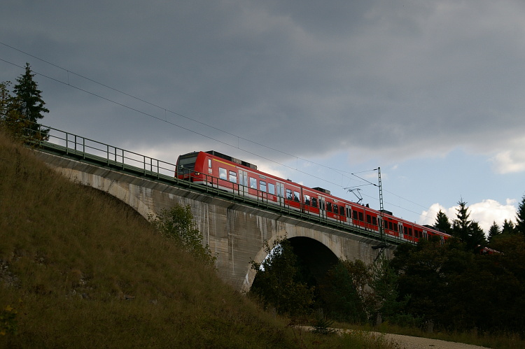 Für das letzte Bild des Tages ging ich ein Stück weiter in Richtung Hattingen. Gerade wird die Einödtalbrücke von einem 425+426-Gespann Richtung Stuttgart überquert.
