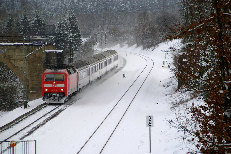 Dieses Bild ist beim Haltepunkt Rottweil-Saline entstanden. Es zeigt 120 118 mit dem IC 186 auf dem Weg nach Stuttgart.