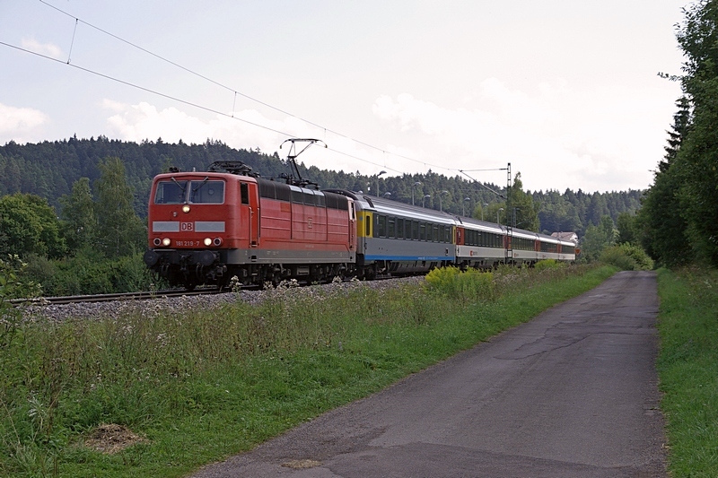 Aus der Gegenrichtung kommt der IC 181 aus Frankfurt an. Seit Stuttgart ist 115 448 das Zugpferd.