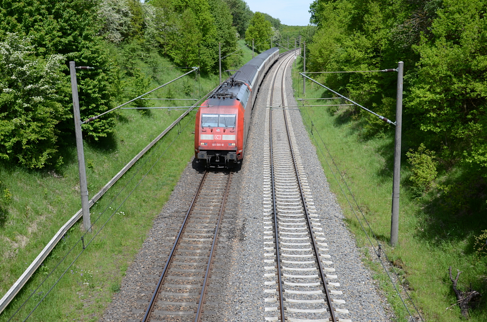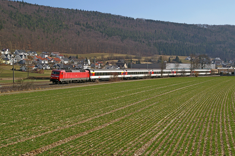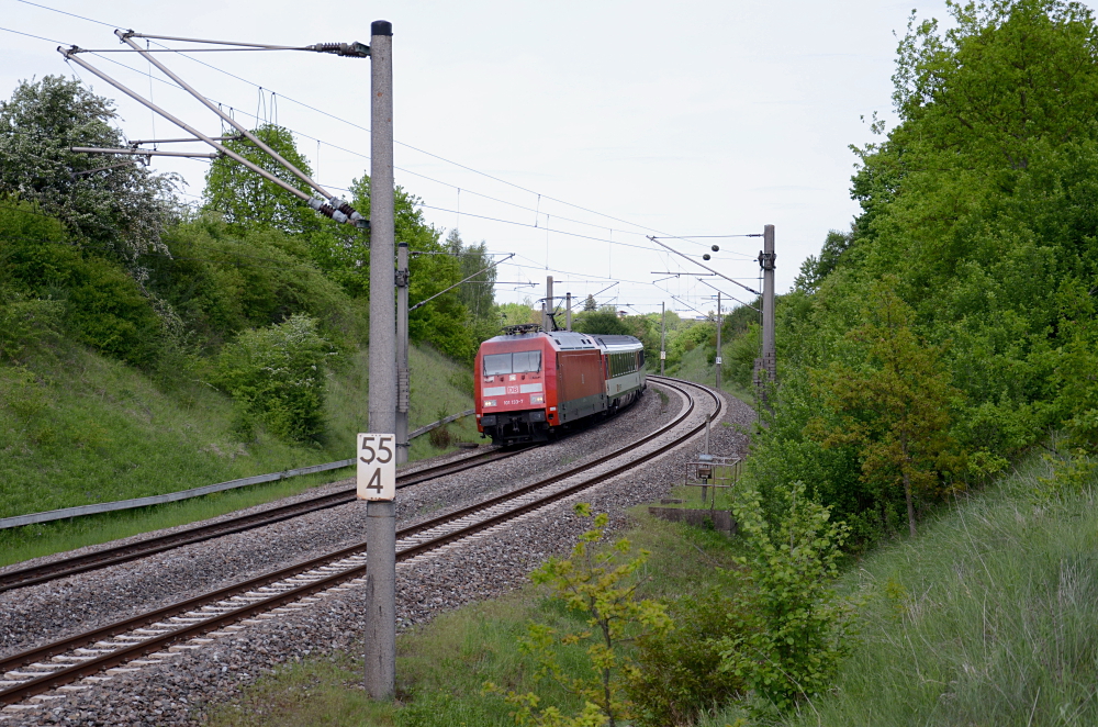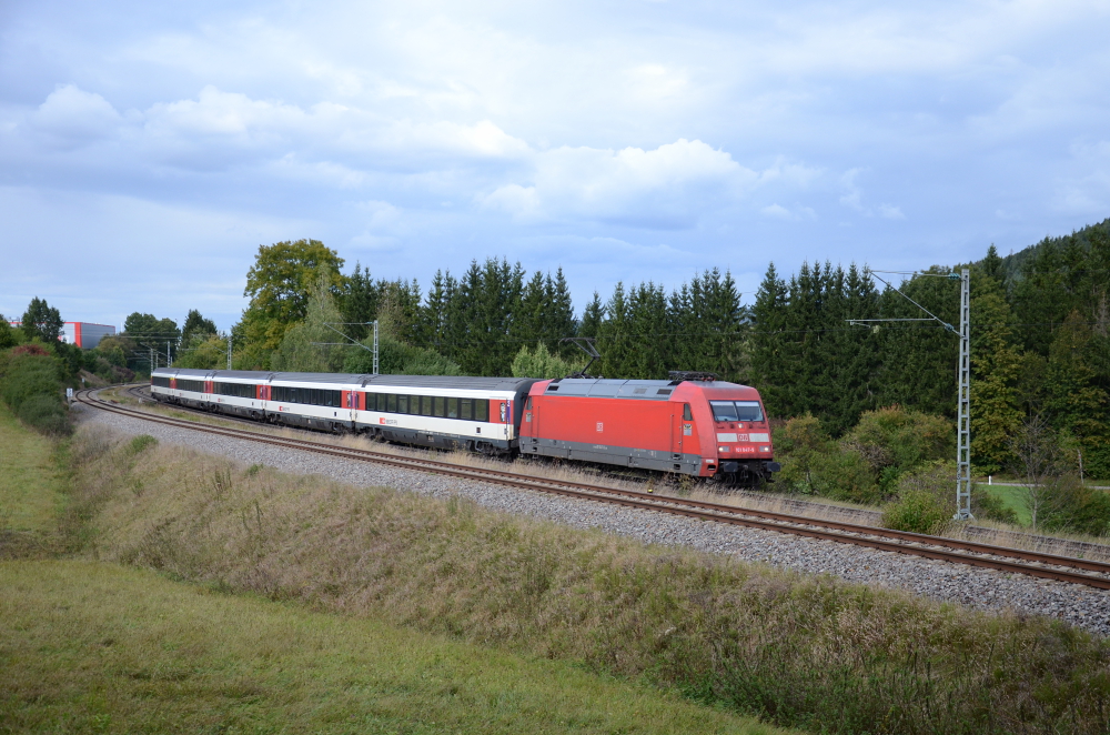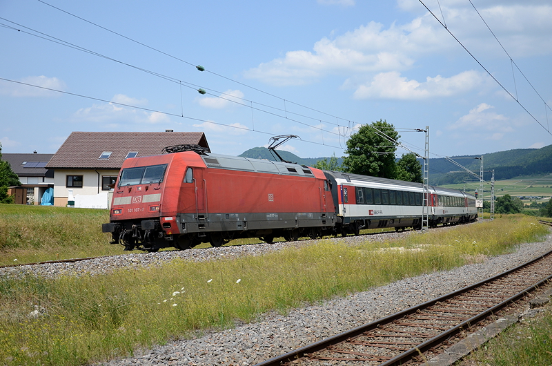 Etwa 3 km nach dem Rottweiler Bahnhof habe ich den IC 187 nach Zürich mit 101 047 als Zuglok fotografiert.