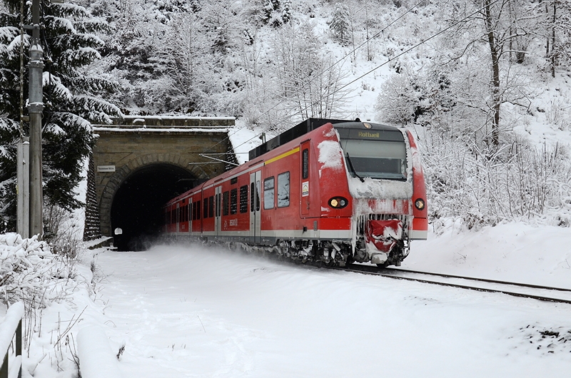 Schnurgerade ist das 654 Meter Tierstein-Tunnel. 425 308 ist gerade als RE 19085 von Stuttgart nach Rottweil durchgefahren.
