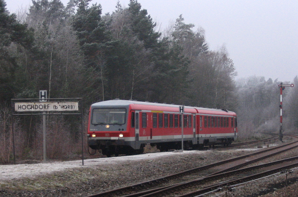 Ein 628.2 verlässt den Bahnhof Hochdorf in Richtung Freudenstadt