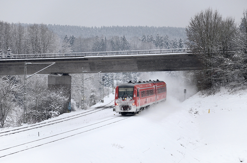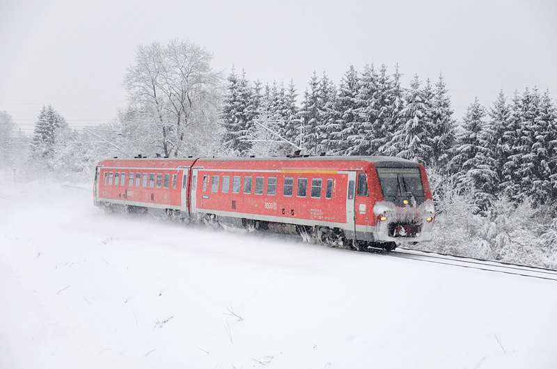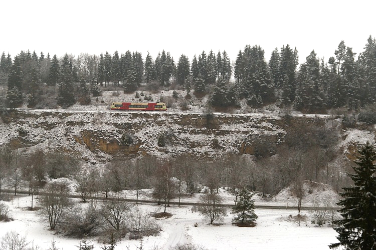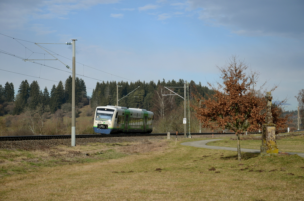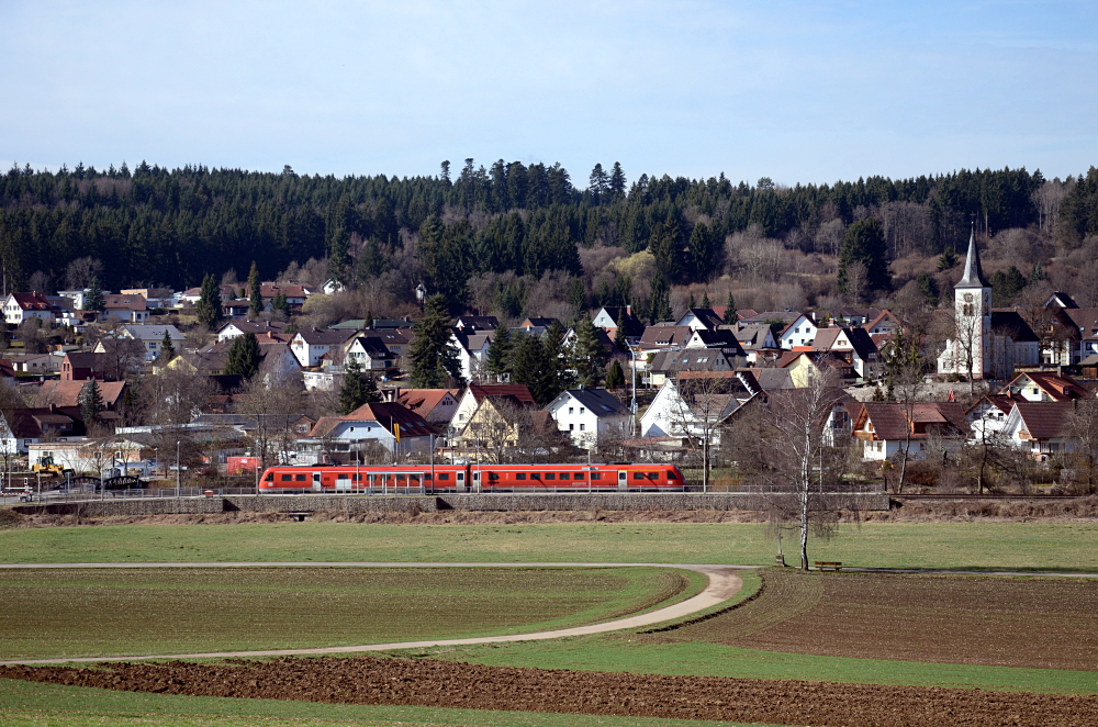 Am selben Punkt ist dieses Bild entstanden, allerdings fast 6 Monate später. Ein 611er fährt als RE 22300 von Titisee kommend nach Rottweil.