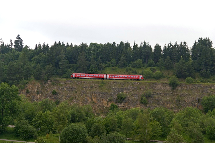 An der gleichen Stelle, nur mit Blickrichtung Deißlingen: VT 246 fährt Rottweil entgegen.
