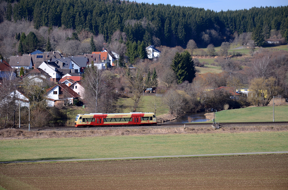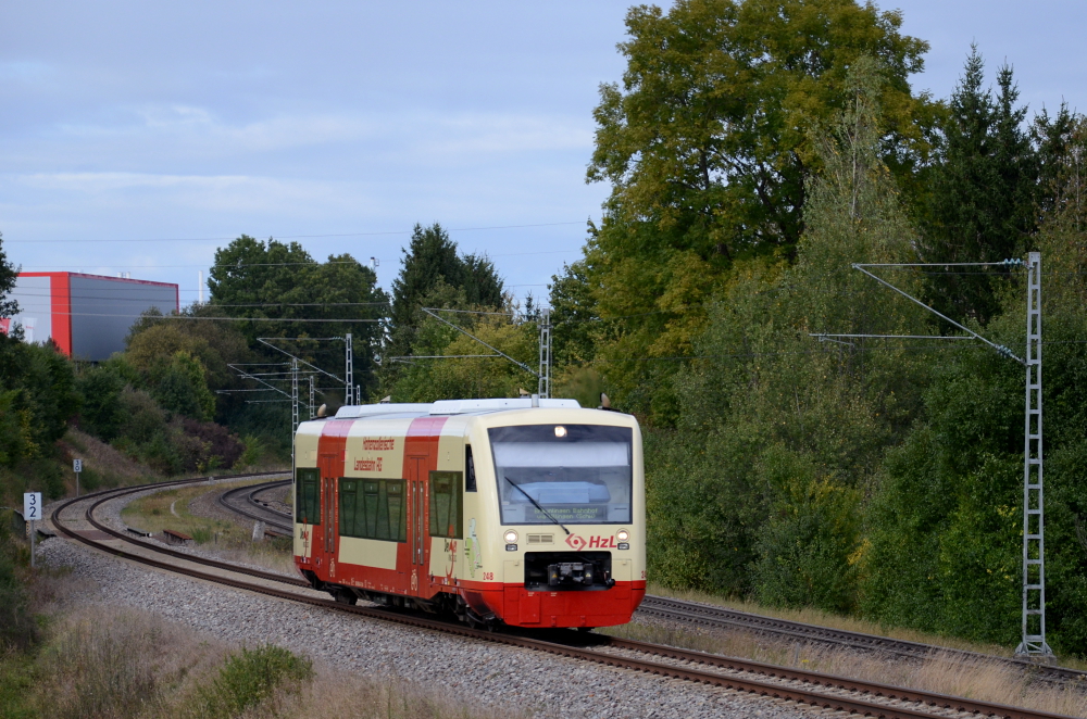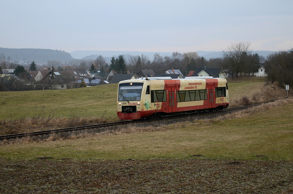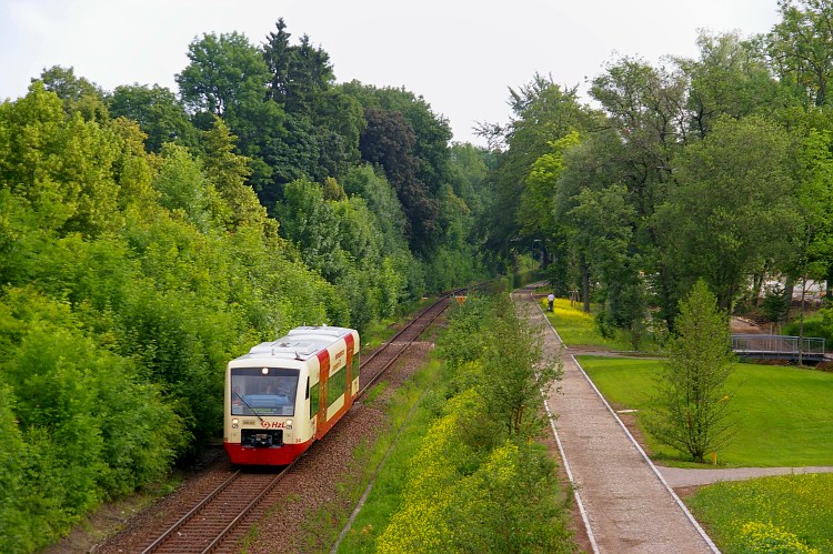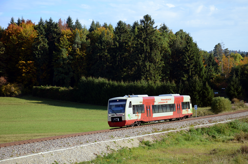 VT 249 der HzL hat vor kurzem Rottweil verlassen und wird gleich Deißlingen erreichen.