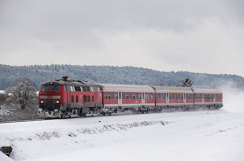 Immer noch sind Lokomotiven der Baureihe 218 auf der Alemannenbahn anzutreffen. So auch heute die 218 496 die den RE 22304 von Neustadt nach Rottweil zog. Aufgenommen habe ich das Foto bei Lauffen ob Rottweil.