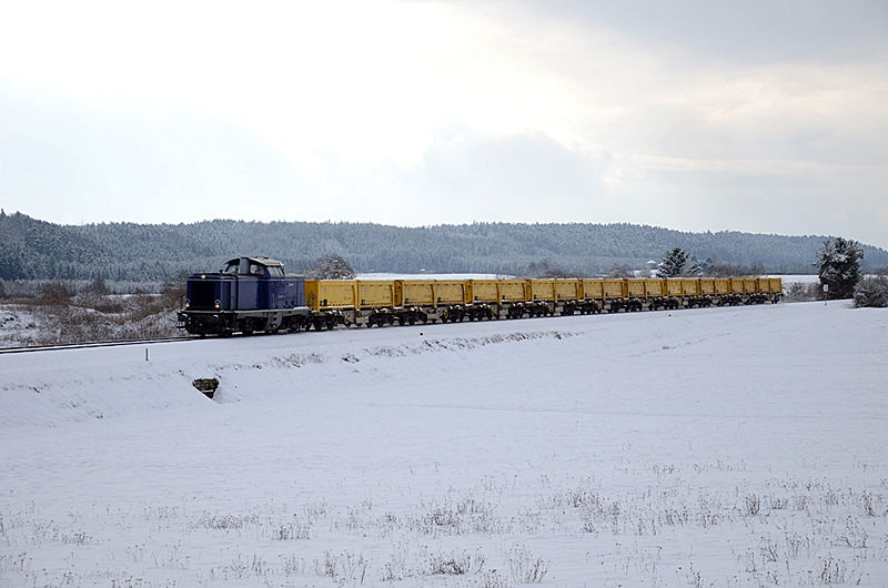 Und dann lies sich die "Yannika" (Heinrichsmeyer Eisenbahndienstleistungen, vermietet an UTL Umwelt- und Transportlogistik GmbH) alias 212 024 mit einem leeren Aushubzug nach Rottweil blicken.