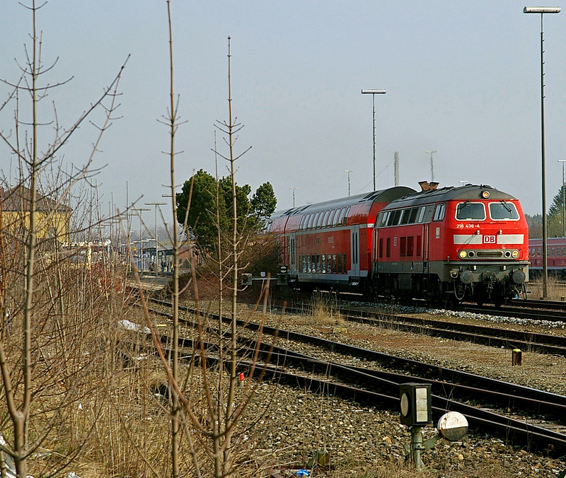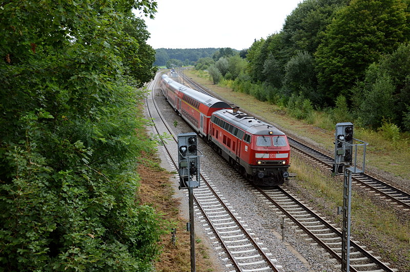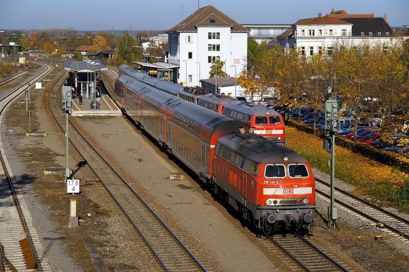Steuerwagen voraus kam dann der IRE 4228 aus Lindau angefahren. 218 410 schiebt ihn bis Ulm, wo er dann eine E-Lok bis Stuttgart erhält.