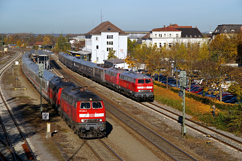 Mit reichlich Verspätung ließ sich auch noch der IC 119 (Münster-Innsbruck) blicken. Gezogen wird er von 218 494 und 499.