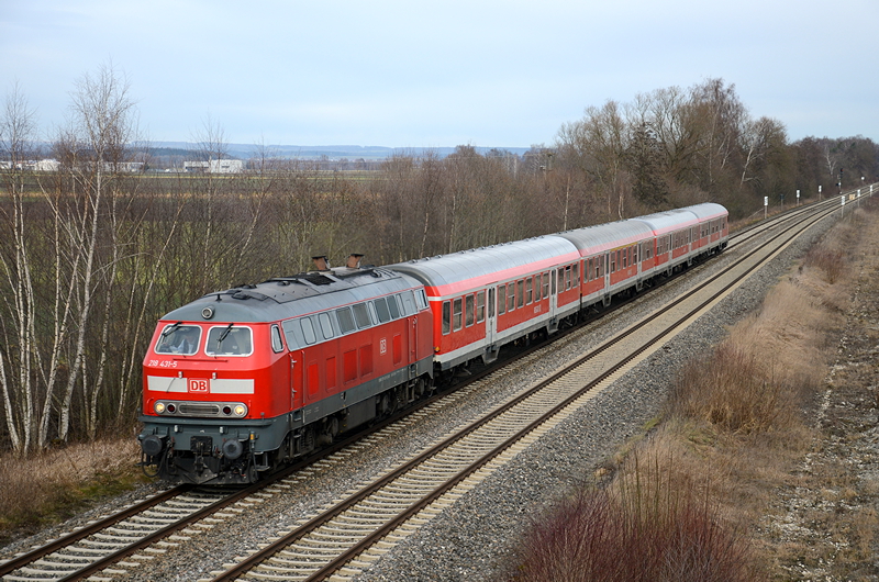 Bei Aulendorf durfte 218 439 mit dem IRE 4227 (Stuttgat-Friedrichhafen) aufs Foto.