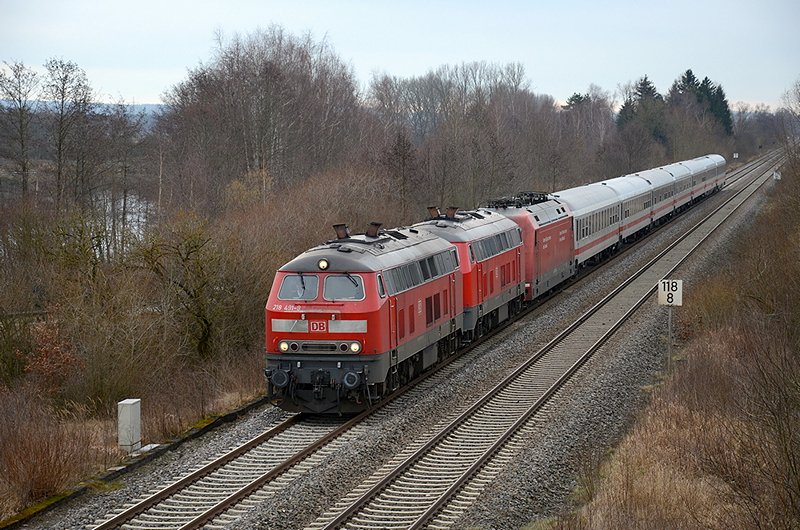 An der gleiche Stelle konnte auch noch der IC 119 (Münster-Salzburg) mit 218 435 und 499 als Zugmaschinen abgelichtet werden.