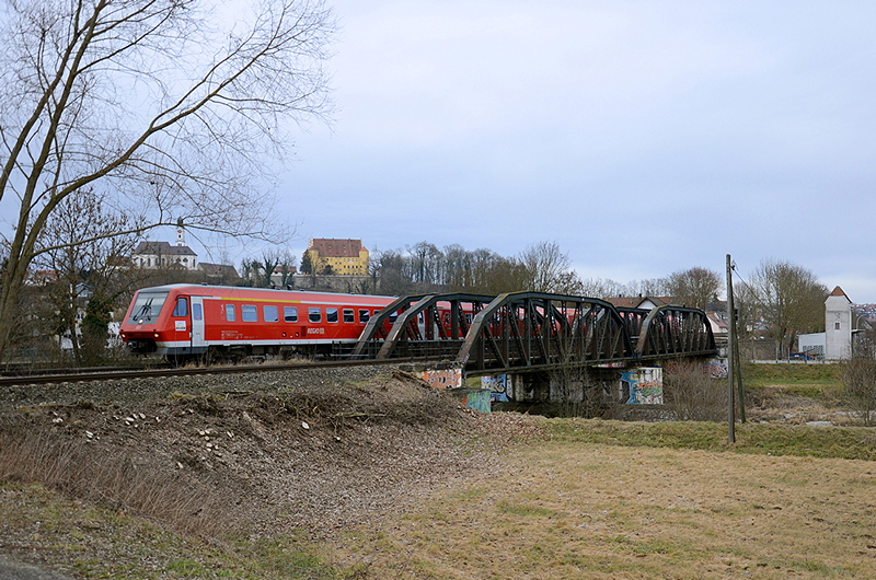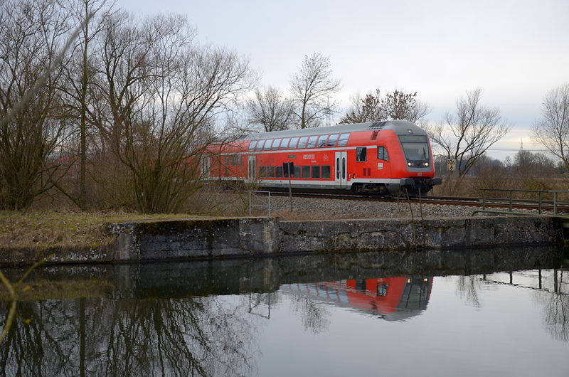 Nun fuhr ich noch nach Erbach an die Donaubrücke. Ich wollte mal wieder einen Zug mit Schloss und Kirche im Hintergrund aufnehmen. Mit 611 039 und 018 als IRE 3368 (Ulm-Basel) ist mir das aber nur bedingt gelungen.