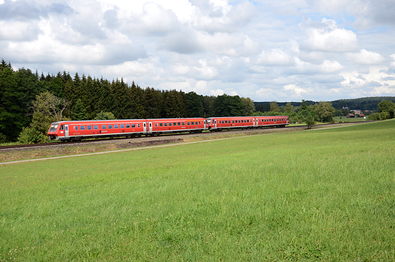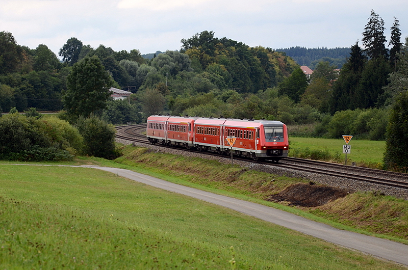 Beim ehemaligen Riss-Kieswerk brummelten zwei 611er als IRE 3356 (Ulm-Friedrichshafen-Singen-Basel) an mir vorbei. Der vordere war 611 009, der hintere blieb unerkannt.