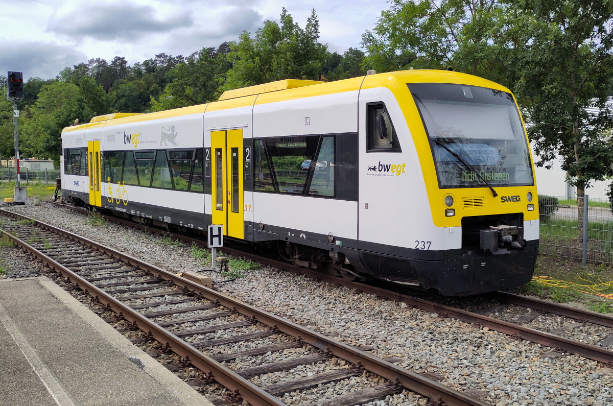 Wesentlich leichter dagegen hat es VT 42. Er darf nämlich als Zug 12 (Gammertingen-Hechingen) bergab rollen.