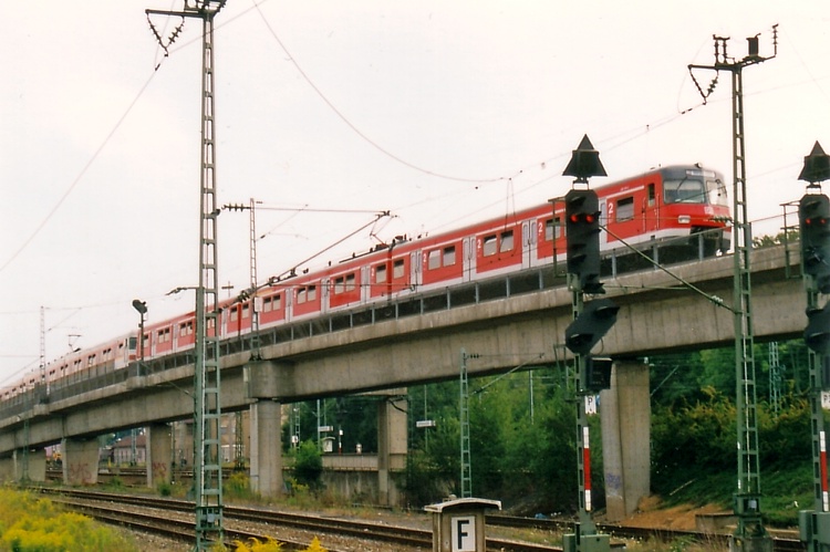 Der 420er fährt von der Schwabstrasse kommen in den Bahnhof Zuffenhausen Hochbahnsteig ein. Er ist als S6 auf dem Weg nach Weil der Stadt.