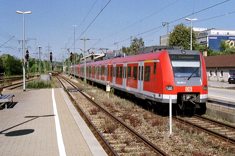 Ebenfalls auf der Linie S1 ist 423 017 unterwegs. Er kommt gerade aus Plochingen in Böblingen an.